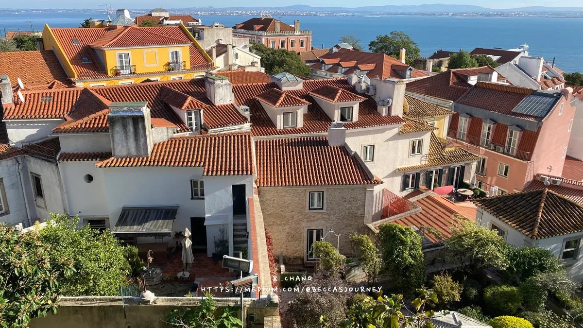 踏出地鐵站看到遠方的山城,房子依著山勢建築而成,腳下的路也從平地變成緩坡,背著後背包的我,此刻很慶幸沒有托行李箱來葡萄牙,順著坡度而上還有很多階梯在等著我,看似10分鐘的路程,因為上坡和樓梯應該多出5分鐘左右,內心哀嚎著,後悔自己匆忙之下沒有先看青旅的街景。