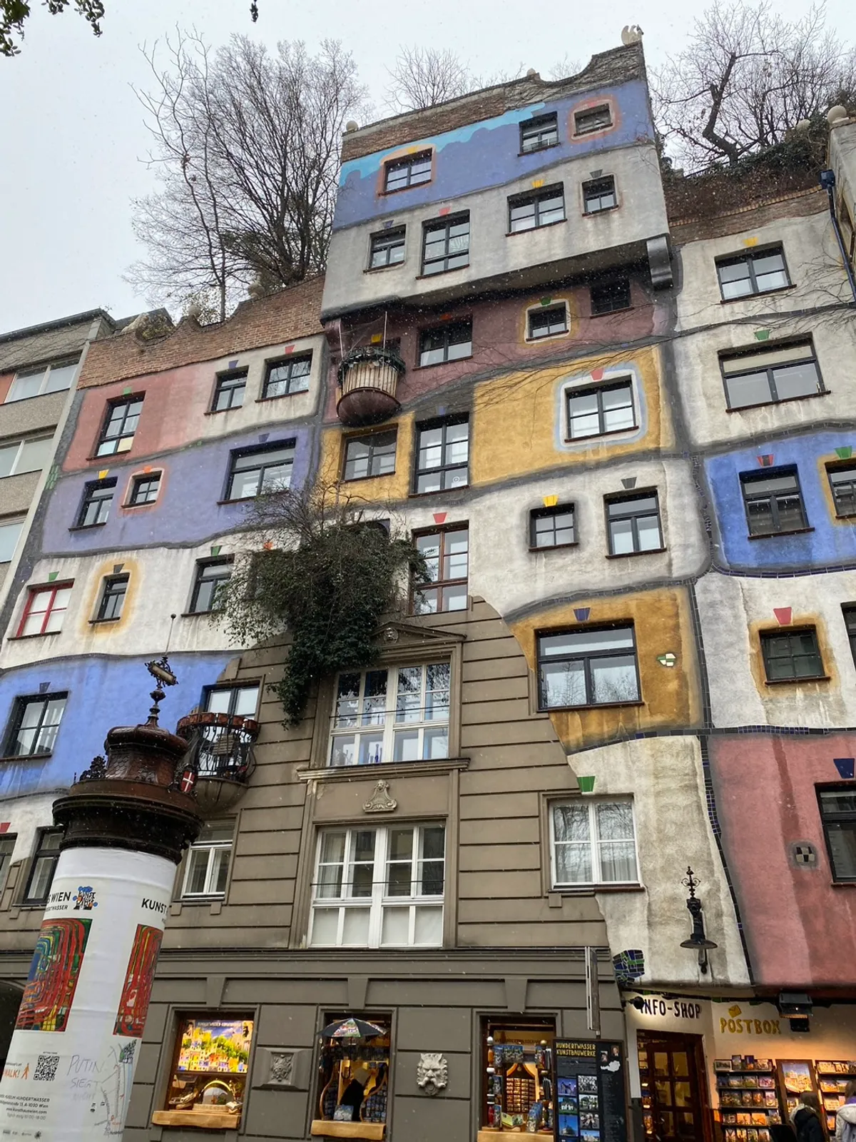 用最後待在奧地利的一天來百水公寓看看,他其實是公共住宅,但因為建築風格鮮明外觀造型、顏色等獨特,吸引非常多人前來朝聖,建築師Friedensreich Hundertwasser百水先生擅長將建築透過顏色或造型而轉化成其他印象,可以發現在他的作品當中線條通常都是流線形取代常見的直線這樣的方式也上環境感受上更加溫和親切,讓自然融入當地社區的同時人們也與自然共生、共處,每個建築本身擁有自己的樣態無論是顏色、形狀、表情,而非普遍認知中略為生硬的混凝土構造物。